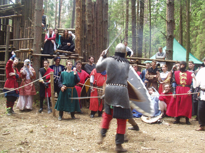 Сэр Ательстан сражается с сэром Ги де Туаром. Последний в характерных желтых штанах. По-моему, это два раза ку :)