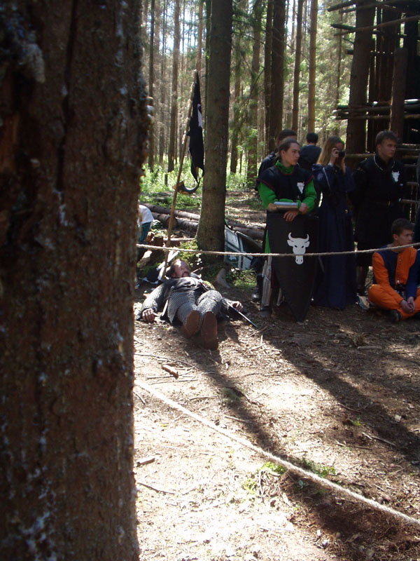 Нет, ни одного боя на смерть во время турнира не было. Человек просто отдыхает :)